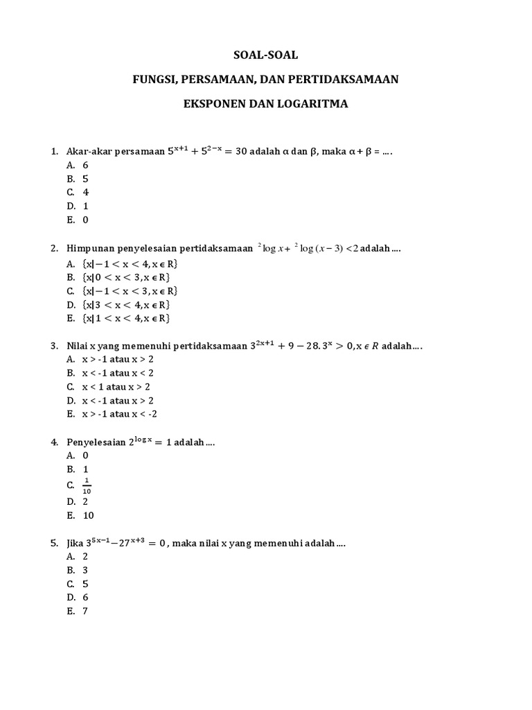 Contoh Soal Eksponen Persamaan Pertidaksamaan Penyelesaiannya Soalfismat Com from soalfismat.com Contoh soal pertidaksamaan eksponen kelas 10 dan pembahasannya. Maybe you would like to learn more about one of these? Check spelling or type a new query. We did not find results for: