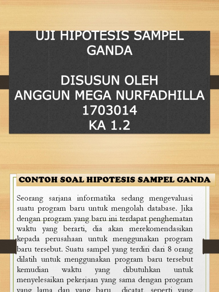 10 Uji Hipotesis Satu Rata Rata from image.slidesharecdn.com 103+ contoh soal uji t statistik + jawaban. Karena dari hipotesis tersebut tidak menyatakan suatu petunjuk seperti lebih besar atau lebih kecil, maka kita menggunakan uji dua arah. Pasangan hipotesis tersebut dapat ditulis kembali sebagai berikut. Ingin mengetahui apakah tipe a memiliki waktu hidup lebih lama daripada tipe b. 30 full pdfs related to this paper. Contoh soal dan jawaban uji hipotesis. Uji hipotesis mean populasi 2. Kedua sampel tidak saling berpasangan.